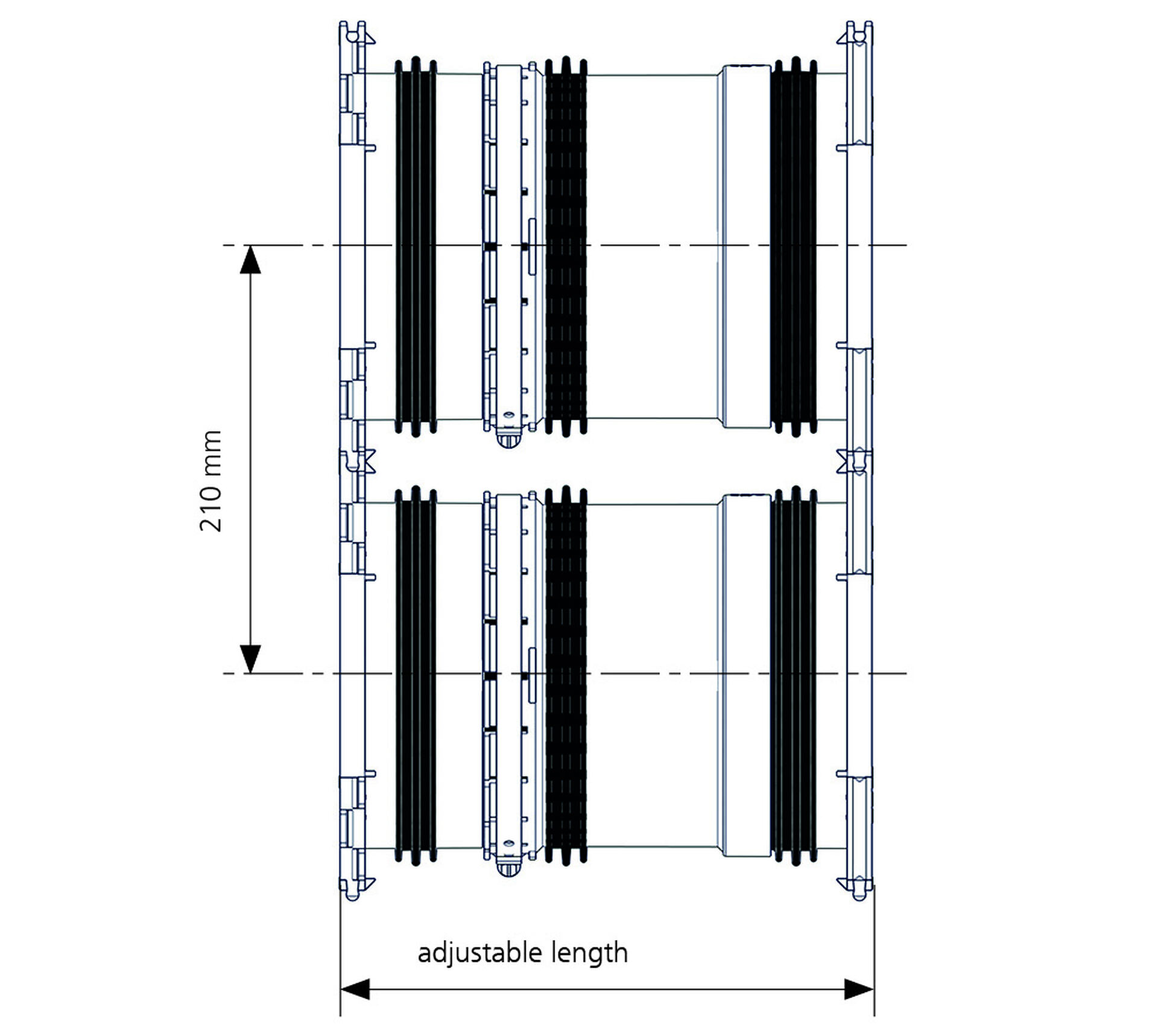 • Centre to centre distance: 210 mm