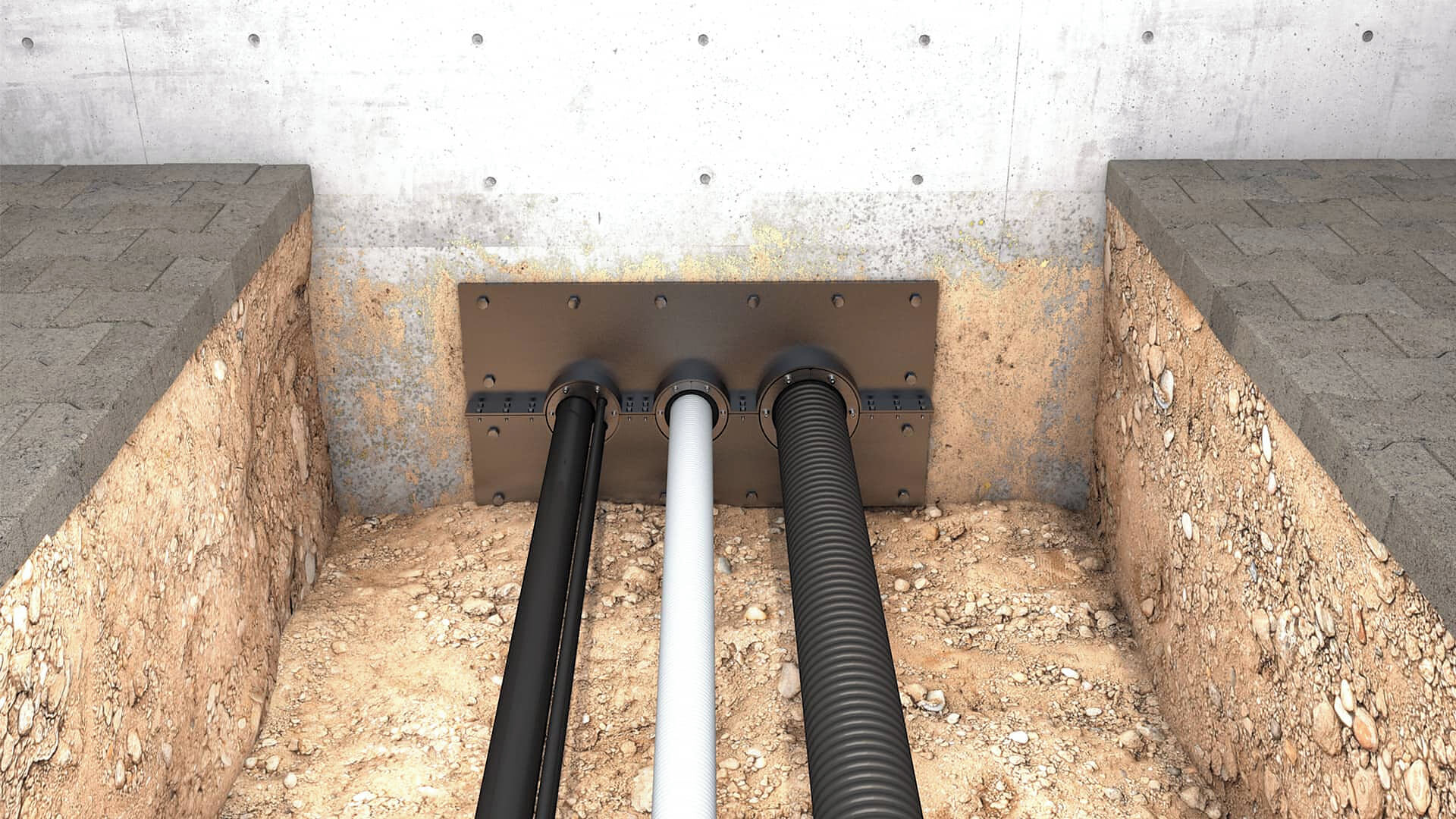 Jedes Gebäude besitzt in der Regel mehrere Ein- und Ausführungen. Diese gewährleisten sichere Schnittstellen für sämtliche Versorgungsleitungen. Die Gebäudeeinführung wird an unterschiedlichen Stellen vorgenommen. Oftmals befindet sich die Hauseinführung unterirdisch. Teilweise werden Gebäudedurchführungen allerdings auch in Wänden oder im Dach montiert. Dazu kommt, dass für diese einzelnen Bereiche oftmals unterschiedliche bauliche Voraussetzungen existieren. Aus diesen Gründen werden für die Gebäudeeinführung flexible und vielseitige Lösungen benötigt. Das Sortiment von Hauff-Technik deckt diese mit einer breiten Produkt-Palette voll umfassend ab.